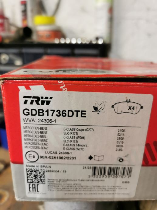 Prednje kočione pločice za Mercedese W212, R172, W204, R172, C207