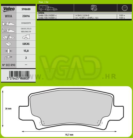 DP TOYOTA COROLLA 02- ZAD 15.8 MM VALEO