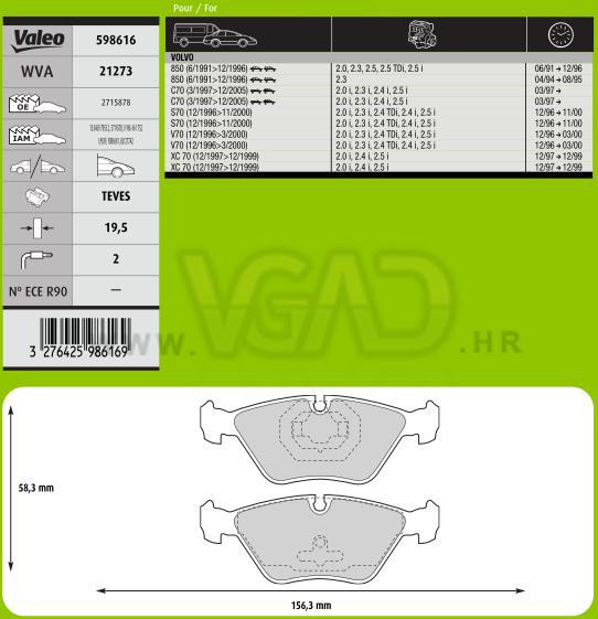 DP VOLVO S70 C70 V70 850 19.5 MM VALEO