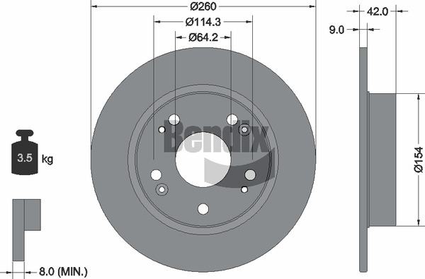 Zadnji kočioni disk Honda Civic IX Saloon D:260x9 ☑️ Bendix:BDS1223