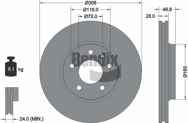 Zadnji kočioni disk Renault Trafic II Bus D:306x28 ☑️ Bendix:BDS1039HC