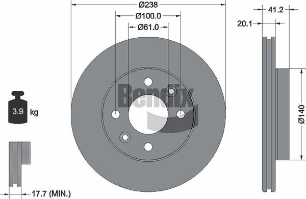 Zadnji kočioni disk Renault Twingo II D:238x20.1 ☑️ Bendix:BDS1066