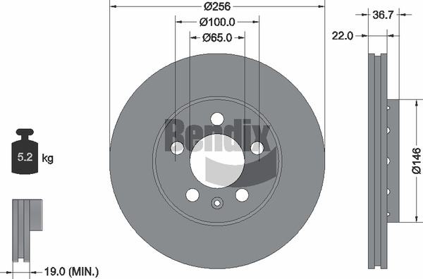 Zadnji kočioni disk Seat Toledo II 98-06 D:256x22 ☑️ Bendix:BDS1002HC