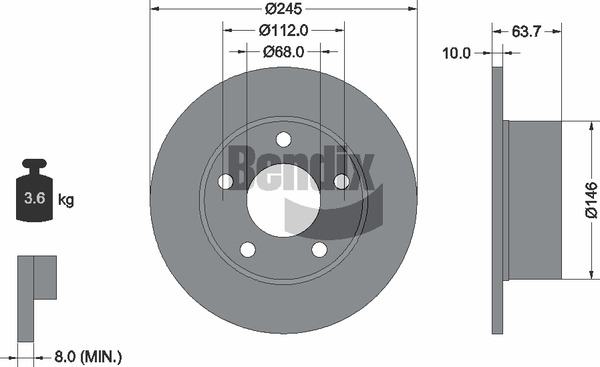 Zadnji kočioni disk Škoda Superb I 01-08 D:245x10 ☑️ Bendix:BDS1068