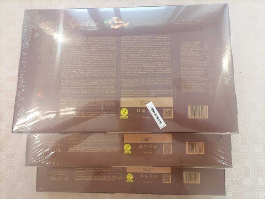 - BAJADERA bombonijera (200g), vrijedi do: 24.10.2025.- 12.12.2025., redovna cijena - 7,99 €. Moja cijena: 5,99 € (imam 5 komada).