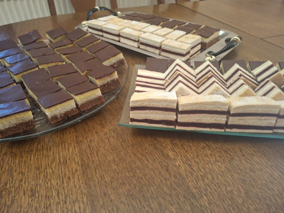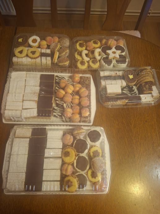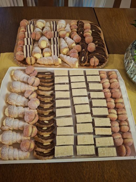 Miješani kolači: mađarica, bijela pita, medena kata, nutelice, voćna mađarica, pita mak-bijela čokolada, breskvice, čupavci, oraščići, rolada s krem bananicama, bajadera, šubarice, medena srca