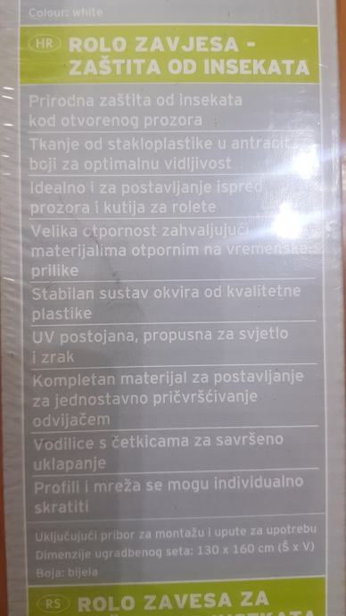 Prodajem novi zapakirani rolo komarnik za prozore otvora do 130x160 cm. Može se skratiti na odgovarajuće dimenzije.