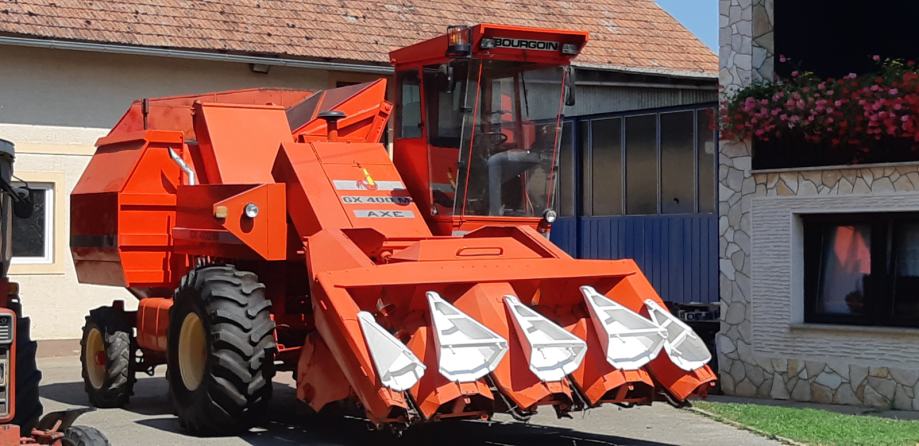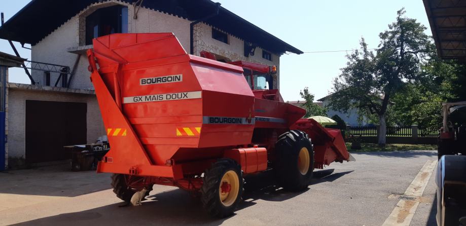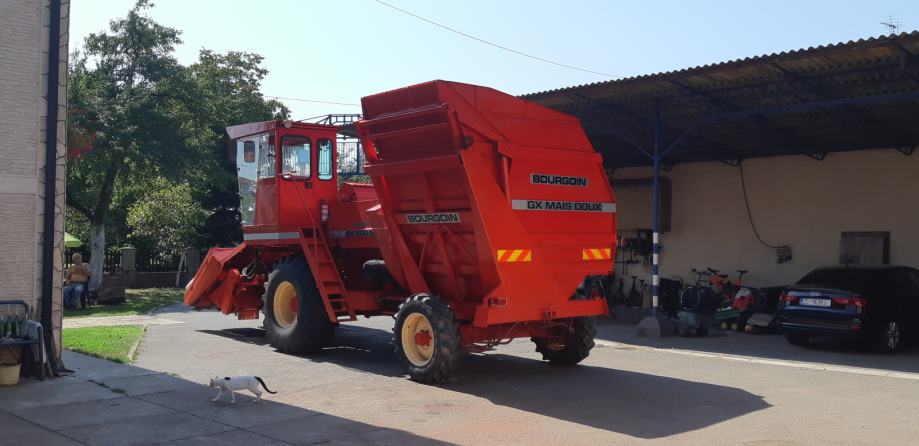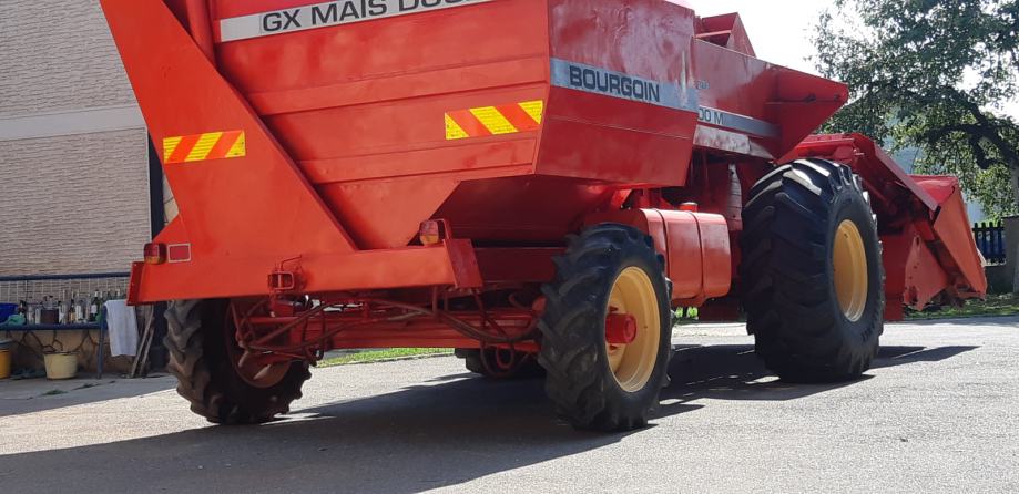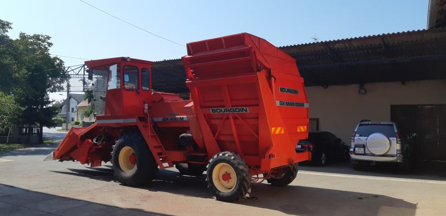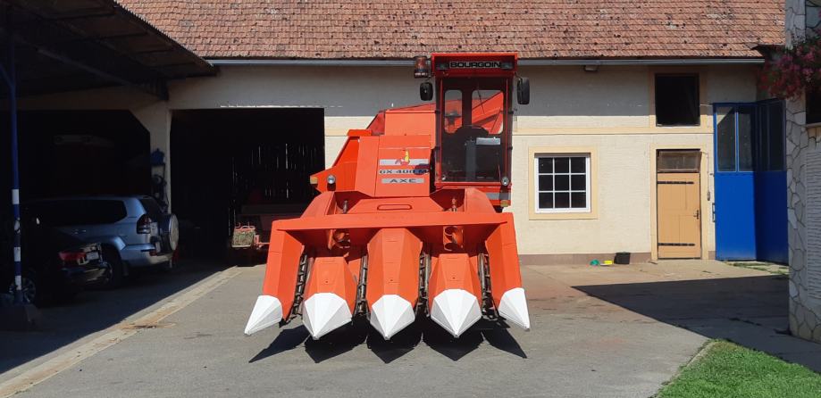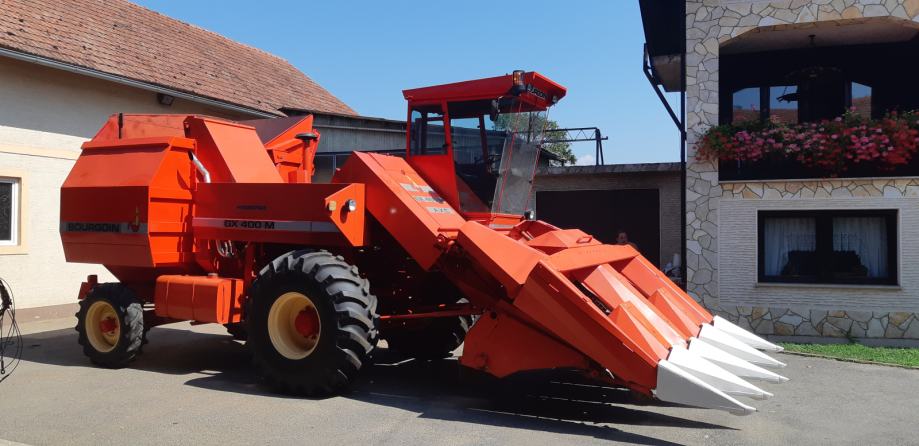 Bourgoin GX 400 M AXE 1990. god. u izvrsnom stanju kao nov s puno dodatne opreme: cetricni heder - AXE, hidraulicnu frezu, pogon na sva cetiri kotaca(4x4), prednje spice na preklapanje. Prednje gume su nove 23,1x26. Bunker ima 7 kubika s dodatnim dizanjem na 4,5 metara visine.
