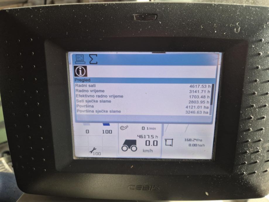 - kabina, klima uređaj, autocontour, ugrađeno računalo, GPS mjerenje površine, kontrola propusta, heder za uljanu repicu