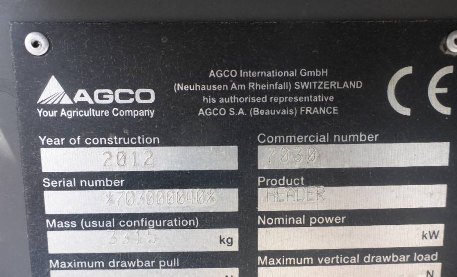 - 4x4 pogon, kabina, klima uređaj, ugrađeno računalo, GPS mjerenje površine, sistem za izravnavanje na nagibima, produžetak cijevi za pražnjenje, kontrola propusta