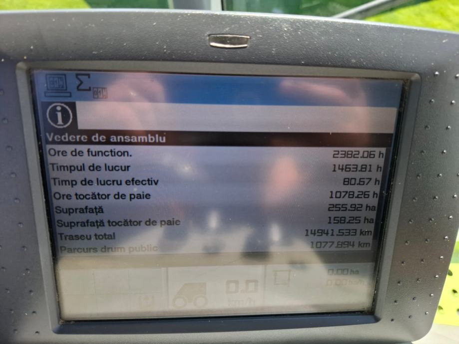 Kabina: grijanje, klima uređaj automatski, podesivi upravljač, brisač vjetrobranskog stakla, sklopivi retrovizori, radio, središnje smješteno zračno sjedalo vozača, multifunkcionalni joystick I CEBIS monitor za mjerenje performansi I radnih parametara.