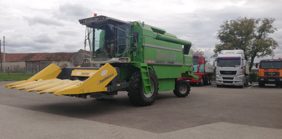 Deutz Fahr 4065 hts, 1999. god. registriran, klima, grijanje kabine, 5005 radnih sati (stvarnih), motor 205 ks, žitni heder 4,20 m sa kolicima, hektometar, radio, senzor rasipa, sječka, gume 30 cola prednje, zadnje nove, sita štelajuća - gornja i doljnja, dugogodišnji vlasnik, održavan i garažiran, spreman za žetvu, bez ulaganja, vrijedi pogledati, mogućnost kupnje sa adapterom Fantini za kukuruz- 5 redova, 2016. god., super stanje