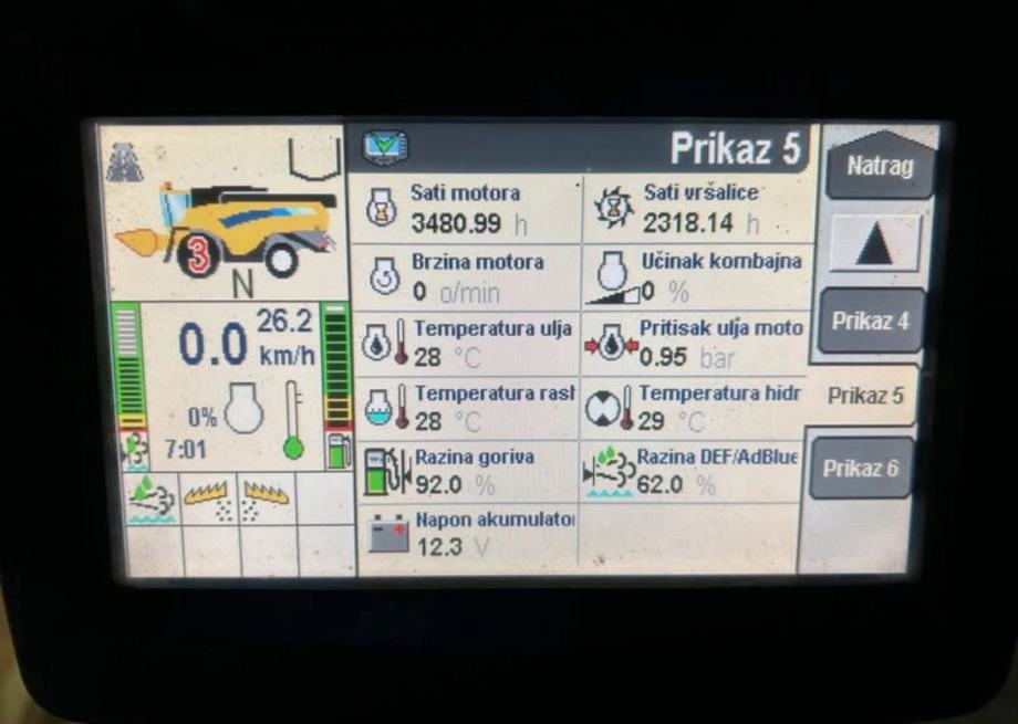 Oprema: Prednji kotači 800, AUTO CONTOUR, električni retrovizori, električno podešavanje korpe, obrtaja bubnja, vjetra, kukuruzna korpa segmentna, bubanj s utezima