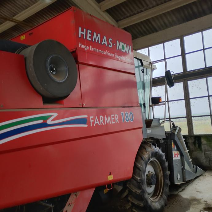 Prodajemo HEMAS GmbH kombajn za kukuruz, serije FARMER 180. Kombajn posjeduje kukuruzni adapter za branje tri reda. Kombajn je u odličnom stanju, uščuvan, ispravan, uredno održavan i garažiran. Ima vrlo malo radnih sati. Cijena iznosi 20.000 EURA sa uključenim PDV-om.