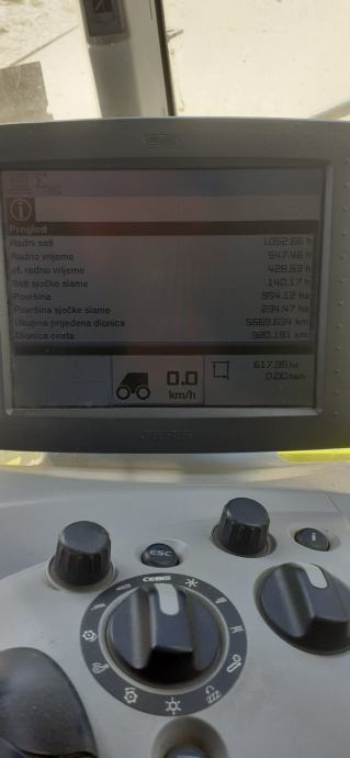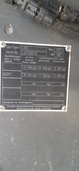 Oprema: automatska klima, oprema za kukuruz, reducir getriba, 3D sita, Radio MP3, multifunkcijska kontrolna ručica, Mercedes-Benz motor 180 kW/ 245 KS, spremnik goriva 500 L, spremnik žita 6.500 litara, transmisija: 25 km/h