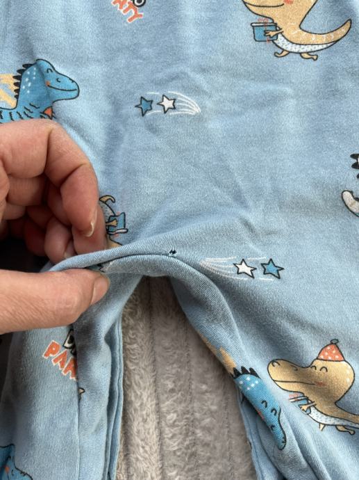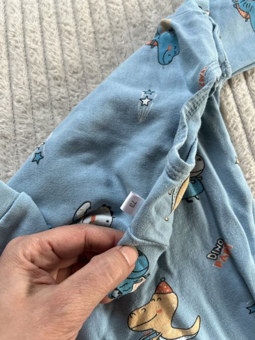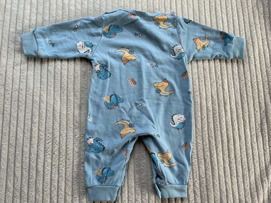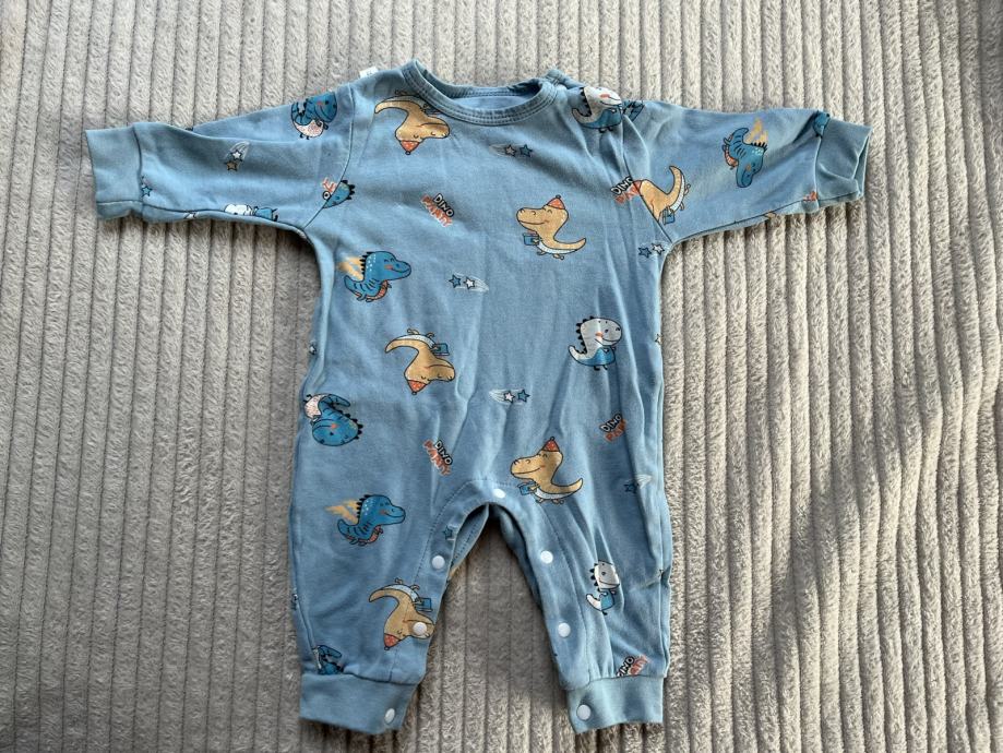 Plavi kombinezon dinosauri 73, deklariran kao 73 ali vise odgovara za 68. Ima sitnu rupicu na stražnjem dijelu, vidljivo sve na slikama.