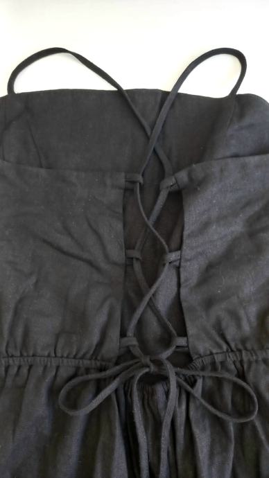 Ženski kombinezon čisto crni na tanke naramenice koje se vežu u križ na leđima i tako se podešava i visina i širina.