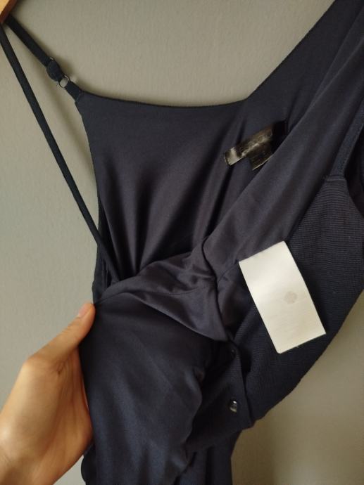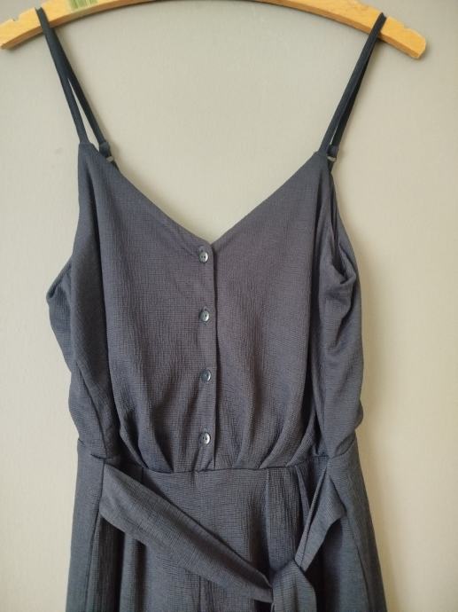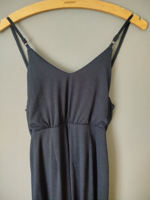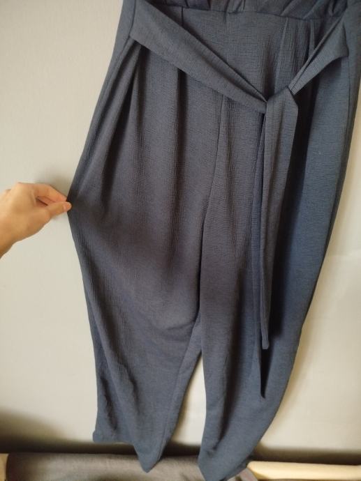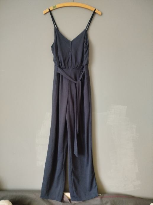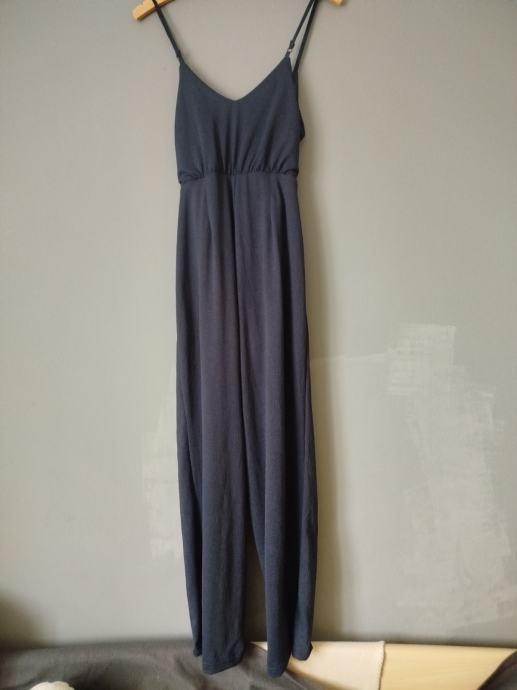 Ženski kombinezon. Tamno plave boje. Nošen jednom, bez ikakvih oštećenja ili tragova nošenja. Na bretele, široke nogavice, 7/8 duljina