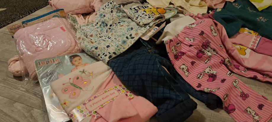 Ima neotvorenih ručnika, kompleta, majica, hlačica, haljinica, većina robe je s etiketom. Ono što nije je kvalitetno i očuvano.