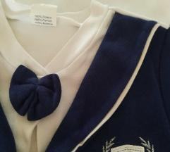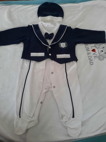 Prodajem prekrasni svečani jednodijelni komplet i kapicu idealno za bebe od 4-6 mjeseci Deklarirana velicina 74 Komplet je nov, nosen par sati za jednu svecanu prigodu.