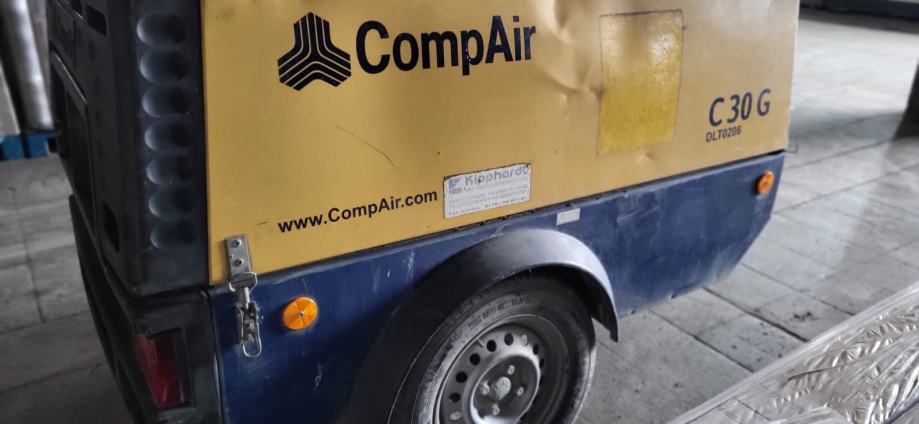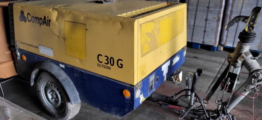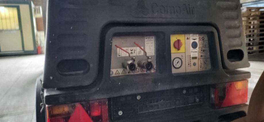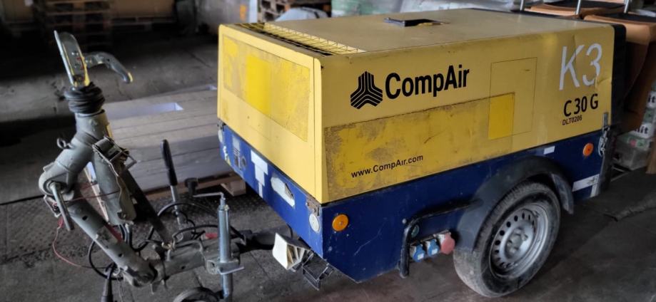 Građevinski kompresor datum prve reg.10.2015, motor Kubota 4 cilindra 23 kw. dizel. Ima izlaze i za zrak i struju. Tlak 7,0 bar / struja 3,0 m3/min. Težina cca 650 kg. Može ga vući i auto ili kamion. Na firmu je,u sustavu PDV-a. i to je ukupna cijena. Vrlo dobro stanje. Sesvete