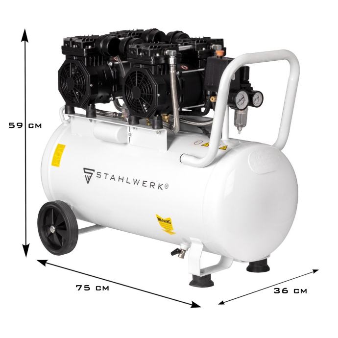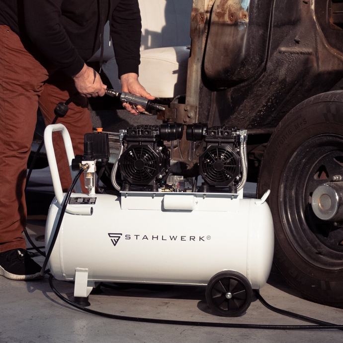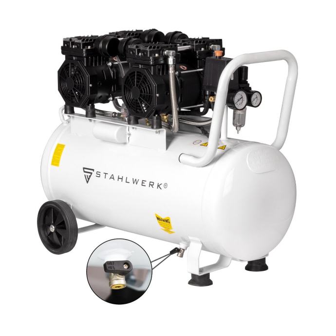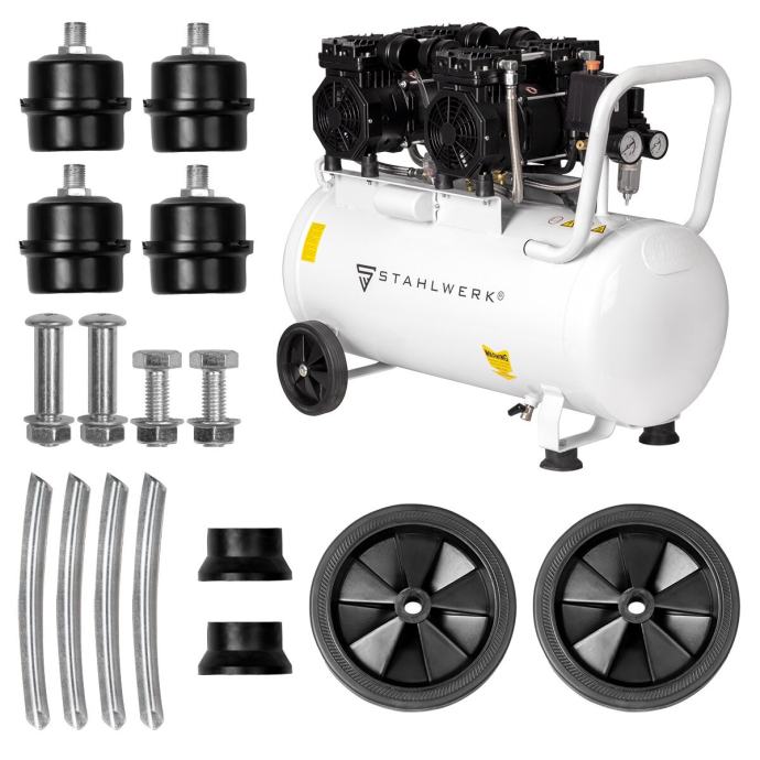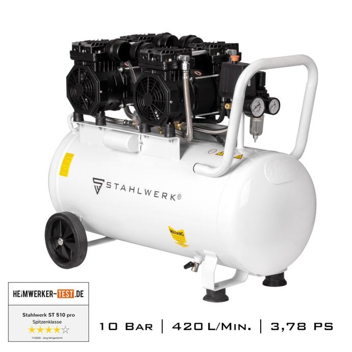 STAHLWERK kompresor sa komprimiranim zrakom ST 510 Pro-spremnik od 50 L, 10 bara, motor bez četkica bez trošenja, bez ulja, vrlo tih, vrlo kompaktan, bijel, 7-godišnje jamstvo proizvođača. Ovaj kompresor je najlakši i najmoćniji u svojoj težinskoj klasi