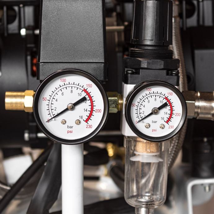 Motor - Snažni kompresor komprimiranog zraka radi s motorima bez četkica i snažnim motorima bez četkica. Dva dvo-klipna motora snage 1,89 KS opskrbljuju bojler s dovoljno zraka za postizanje maksimalnih performansi. Motor je potpuno bez ulja.