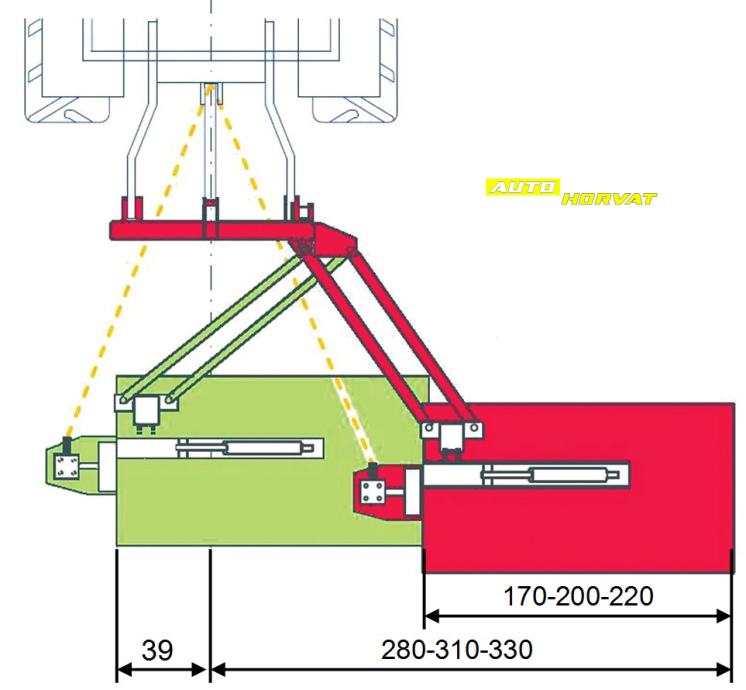 Namjenski priključak omogućuje malčiranje površina iza ili bočno uz traktor nagiba od + 90° prema gore do - 55° prema dolje. Pričvršćivanje na traktor izvodi se putem priključka s 3 točke II. i III. kategorije.