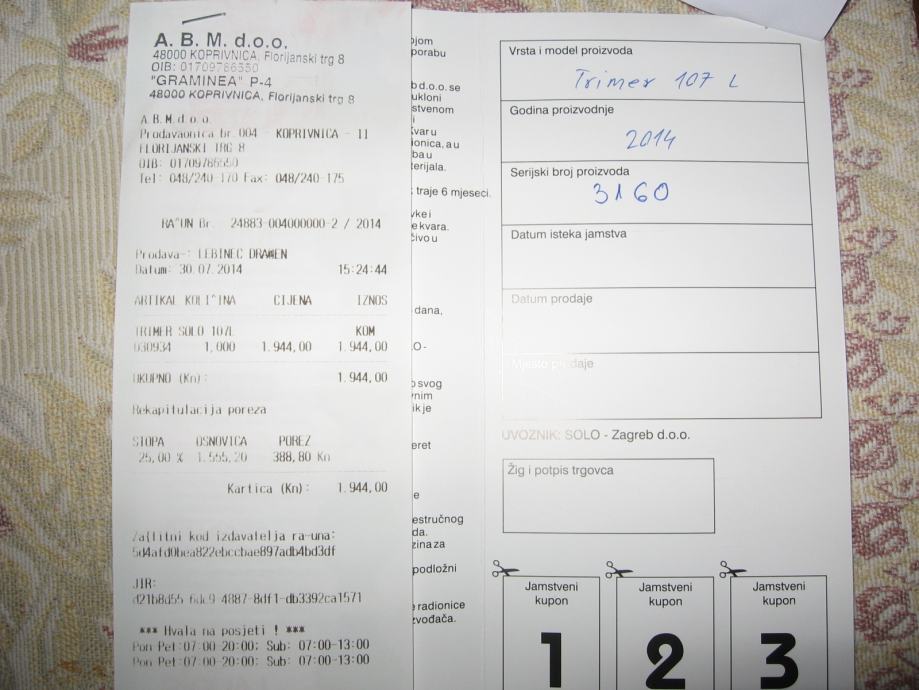 Kupljen u 7. mjesecu 2014. godine, malo korišten, kao nov.