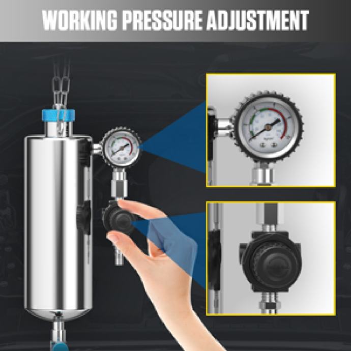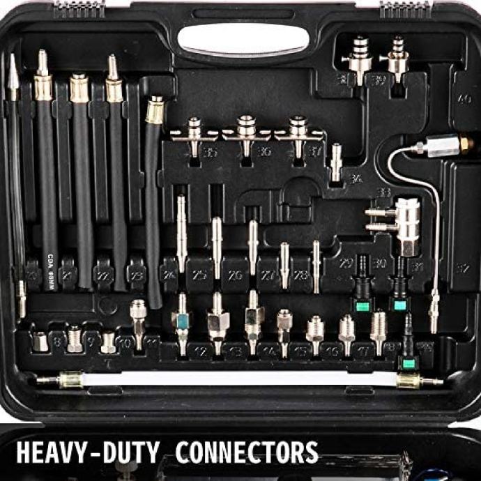 【Široko primjenjivi alati za čišćenje motora】 Ovaj set alata za čišćenje injektora naširoko se koristi u gotovo svim vrstama automobila i lakih kamiona i ima kompletan set dodataka, uključujući razne adaptere (kao što su: jednosmjerni ventil, namijenjen za brtvljenje plina i izdržljiv regulator tlaka, crijevo protiv trenja, itd.)