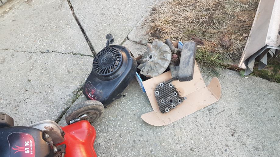 Prodajem kosilicu sa kosem .motor los(baca ulje ) i jos djelovi od drugog motora Tecumseh .oklop potpuno zdrav . .ostalo se moze iskoristit za djelove .cijena za sve zajedno 300kn fixno Donji Miholjac