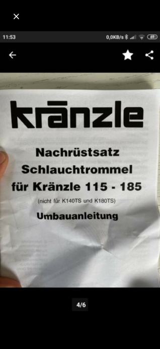 Prodaje se rabljena motalica sa crijevom 15 metara 210 bara i ostalim novim dijelovima za montazu na kranzle perace. Moguca montaza i na druge visokotlacne perace. Kärcher, wap, alto... Cijena 150€.Ako se ne javim salji SMS. Tel-0923997737
