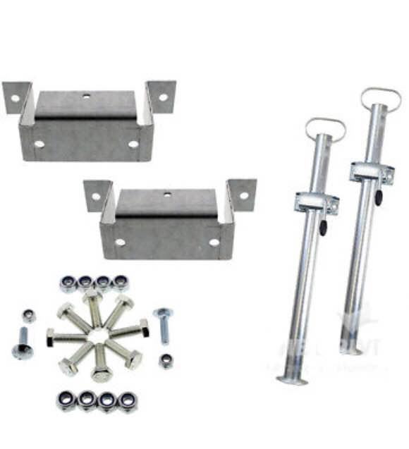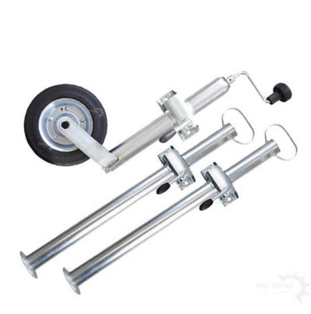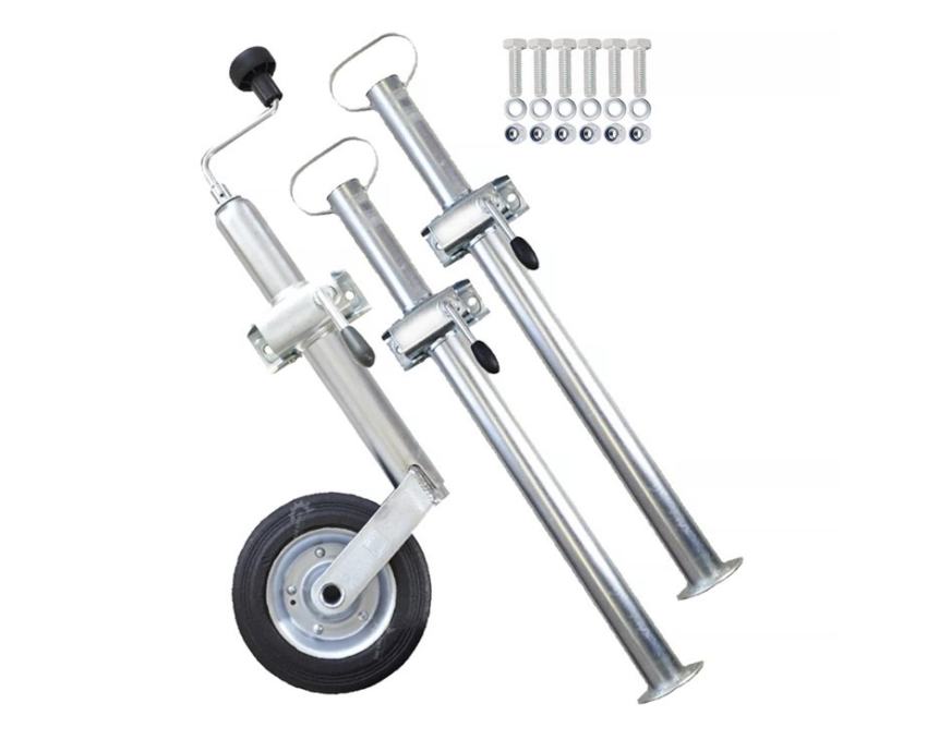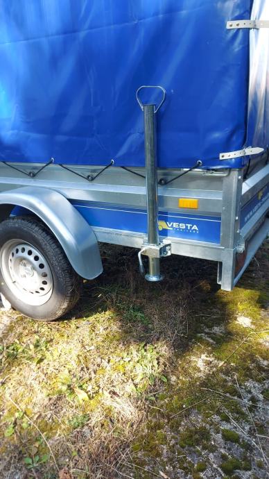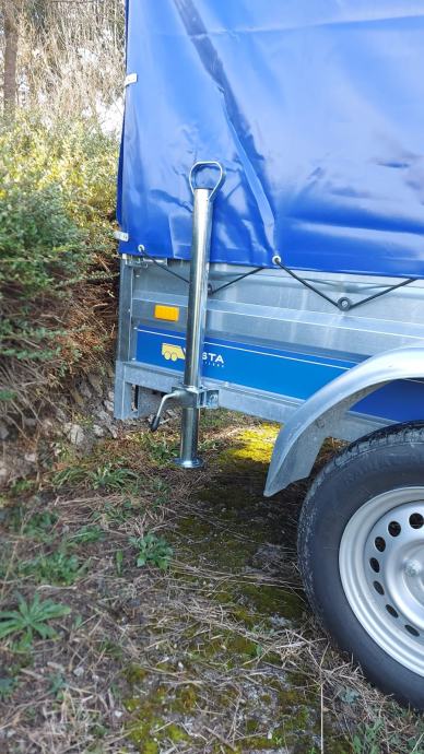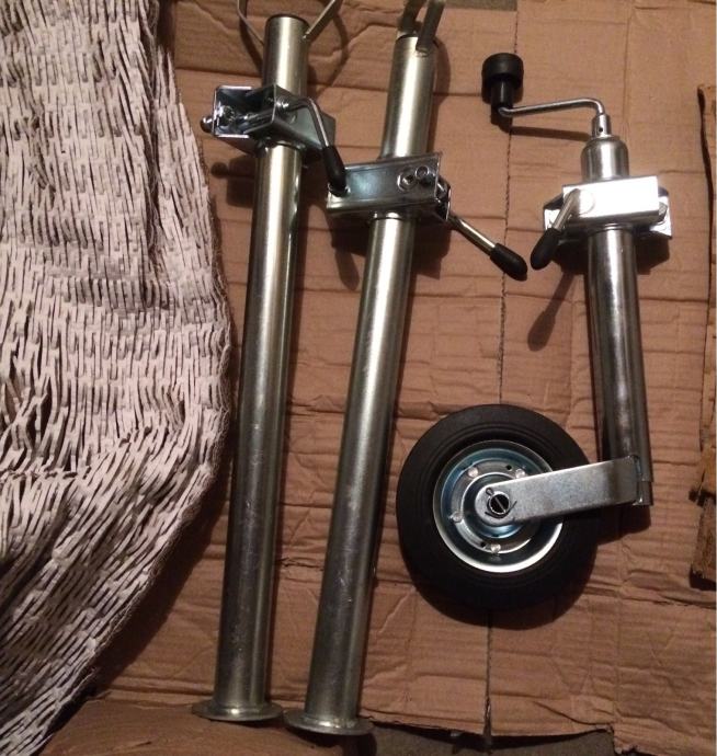 Prodajem komplet (set) opremu za auto prikolice (dodatna oprema): stabilizatori od 70 cm, pomoćni (potporni) kotač s kurblom i pribor (vijak s podloškom i sigurnosnom maticicom M10) za auto-prikolicu.
