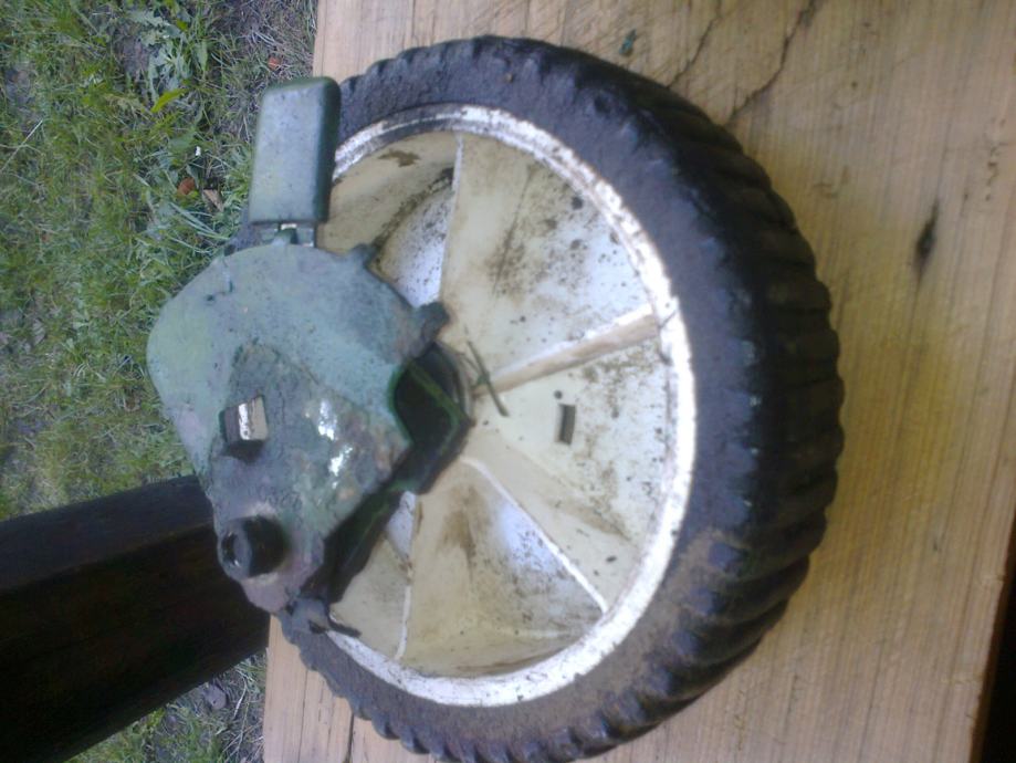 Prodajem kotače za kosilicu sa mehanizmom za podizanje i reguliranje visine košnje. Promjer kotača 19 cm, širine 5 cm, 5 razina podizanja. Cijena je pojedinačna, a prodaja je u paru.