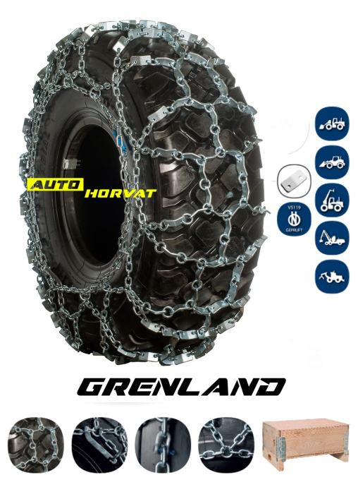 - Lanac u romb izvedbi sa pločicama, za korištenje u poljoprivrednoj mehanizaciji i u najtežim zimskim uvjetima.
