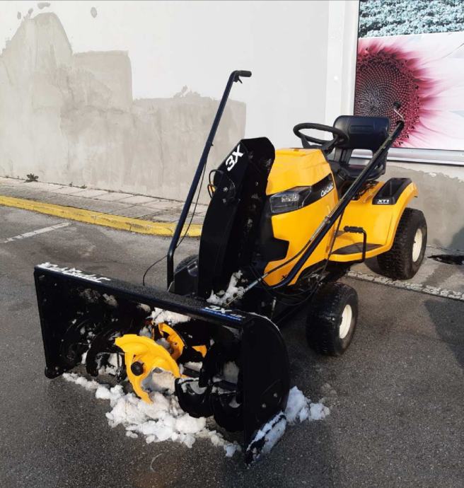 Snježna freza: radni zahvat 107 cm, podesiv kut izbacivanja, aktiviranje sa sjedala traktora, trostupanjska (3X). Jednom korištena, cijena freze u maloprodaji 2600,00€