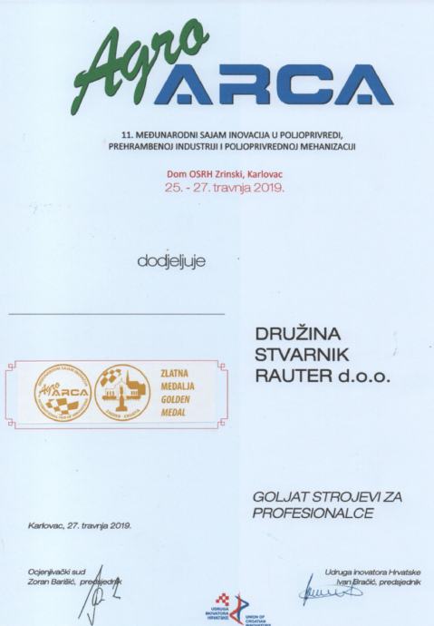 GOLJAT strojevi osvojili su zlatnu medalju na sajmu inovacija AGRO ARCA, Karlovac 2019!