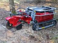 Daljinsko vodeni nosilec orodja na gosenicah opremljen s profesionalnim daljinskim krmiljenjem.