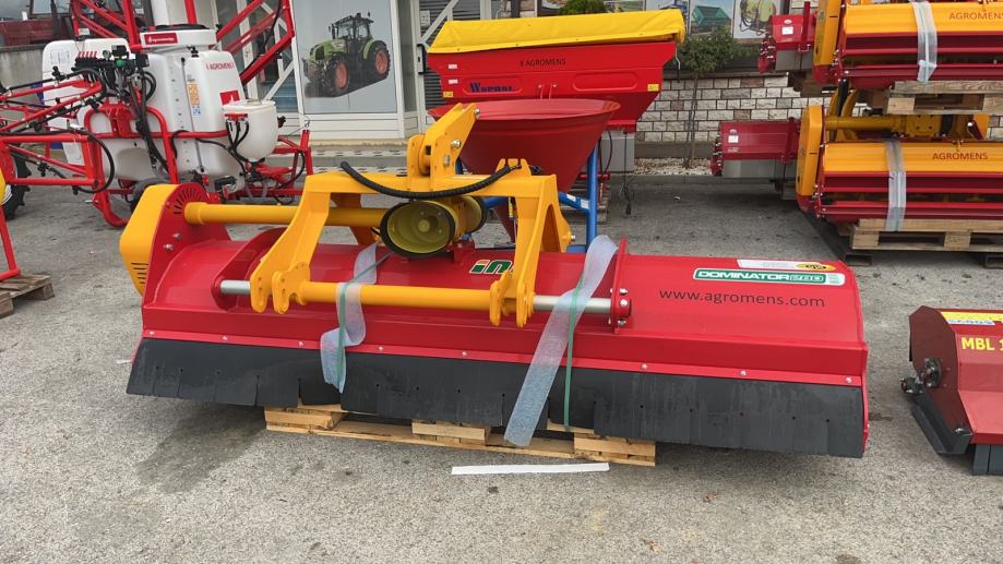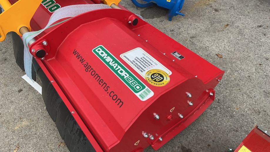 DOMINATOR je kombinirani profesionalni malčer, namjenjen za različito intenzivne radove u poljodjeljstvu. Upotrebljava se za drobljenje ostataka raslinja, kao i manjeg grmolikog raslinja ( promjera do 6 cm ), isto tako u komunalnim djelatnostima na zapuštenim podruičjima. Visoki ulazni otvor omogućava glatki prolazak ostataka visokog raslinja ( suncokreta,kukuruzovine ... ) u dio malčera koji je za drobljenje. Veči razmak između rotora, koji su smješteni u robustno izrađenom kučištu, omogućava veliki protok mase i brzinu rada. Inovacija su segmenti protu - noževa, zamjenjivi, serijski ugrađeni u robustno kučište, isto tako omogučavaju visoku kvalitetu u drobljenju mase. Moderno izrađena konstrukcija malčera, sa visokim ulaznim dijelom, omogućava lakši ulaz i brži protok mase. Kombinirano kopčanje, sa inovativnim plivajućim položajem, sa mogučnošću pregiba, naprijed i unazad, omogučava jednostavno i brzo kopianje u tri točke kako na stražnjoj tako i na prednjoj strani traktora. Unutarnji dvostruki, reverzibilni ležajevi, samočisteći potporni valjak, sa inovativnim, jednostavnim manevrom, omogučava bacanje mase ispred ili izza valjka. Dvo spiralni rotor sa radnim tijelima pod 45 stupnjeva,koji je ugrađen u DOMINATOR malčere, smanjuje energiju koja je potrebna kod drobljenja. Potrebna je manja snaga traktora, rotor u radu djeluje mirnijen manje je opterečenjena ležajeve kao i ostala radna tijela.