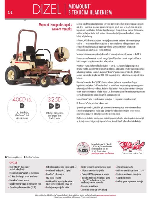 • Motor: Kubota MaxTorque, tri cilindra, 4-taktni, tekuće hlađenje, 25 KS