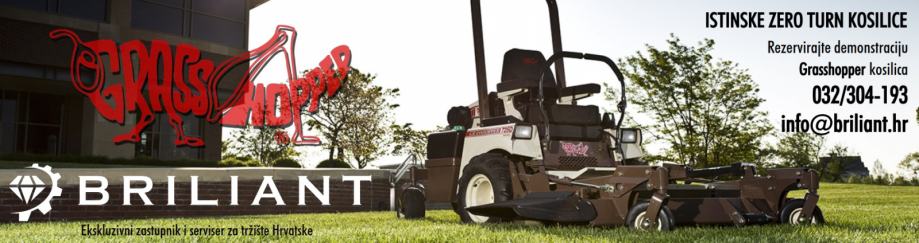 Ekskluzivni smo distributer Zero-turn kosilica Grasshopper za područje RH. Prodajemo cjelokupni asortiman američkog proizvođača Moridge Manufacturing Inc koji sve svoje strojeve proizvodi u Moundrige, Kansasu. Gotovo se svaki dio Grasshopper kosilica oslanja na proizvođačeve patentirane tehnološke izume, a fokus je stavljen na istrajnost dijelova, efikasnost rada i smanjeni karbonski otisak.