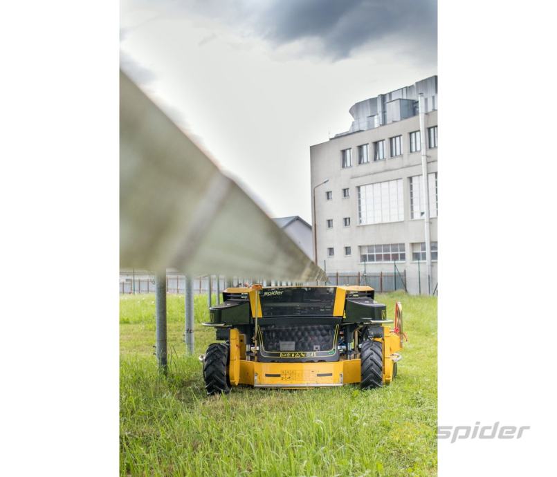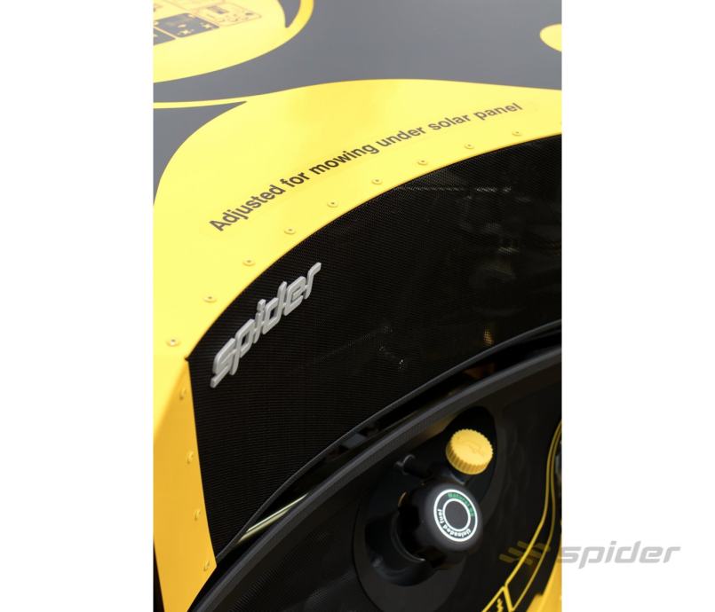Solarni paneli sastoje se od brojnih solarnih ćelija koje su spojene u serijski krug. Kada je izlazna snaga jedne ćelije značajno smanjena, izlazna snaga za cijelu seriju je smanjena na razinu struje koja prolazi kroz najslabiju ćeliju. Pritom mala količina sjene može značajno smanjiti performanse cijelog sustava solarnih panela. Zato je od ključne važnosti zadržati rast trave ispod površine solarnih panela. Gubitak proizvedene energije znači gubitak prihoda za solarne farme pa se održavanje zelenih površina na solarnoj farmi ne smije podcijeniti. Spider 2SGS je certificiran (službena dokumentacija certifikata dostupna na upit) protiv odbacivanja predmeta noževima kosilice čime se izbjegava mogućnost oštećenja solarnih panela dok se kosi oko njih.