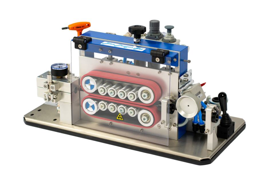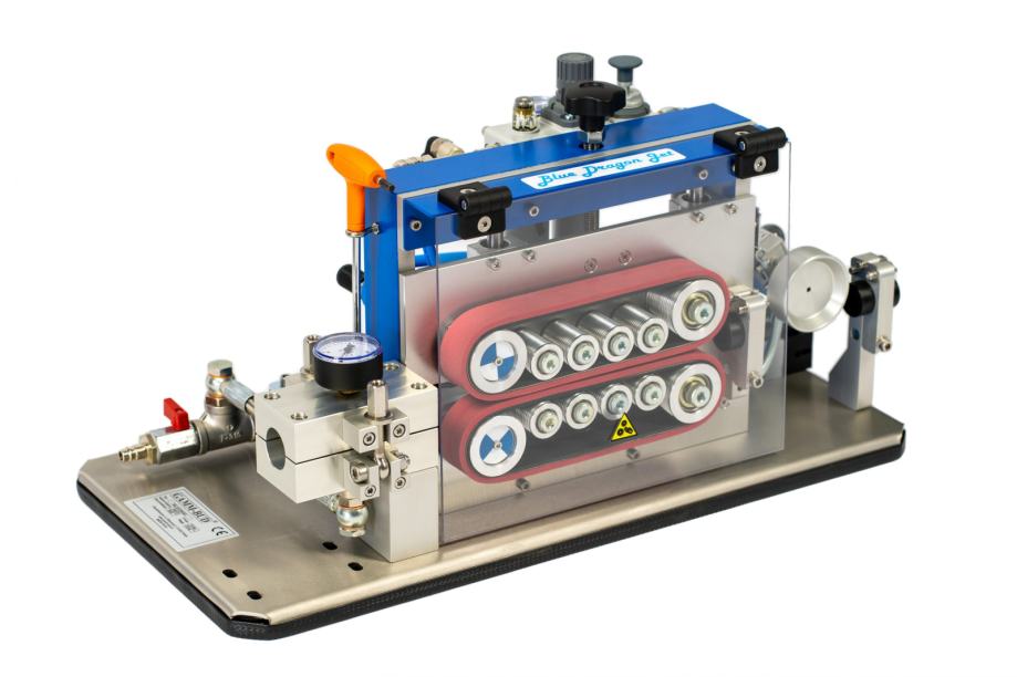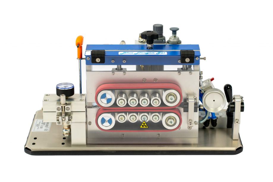 Profesionalni stroj dizajniran za upuhivanje širokog raspona kabela. Čvrsta i jednostavna konstrukcija osigurava laku upotrebu i dugotrajnost uređaja. Stroj je opremljen visokokvalitetnim trakastim punjačem, pneumatskim motorima i prekidačem smjera za promjenu smjera puhanja ili izvlačenje kabela iz mikrokanala. Osnovna verzija ima predinstalirani mehanički brojač metara. Po zahtjevu možemo pružiti elektronički brojač metara s funkcijom mjerenja brzine.