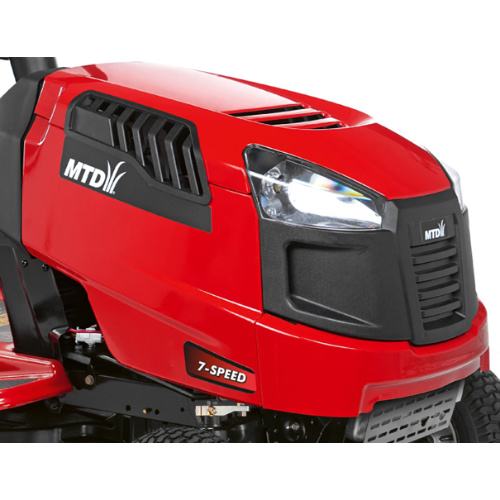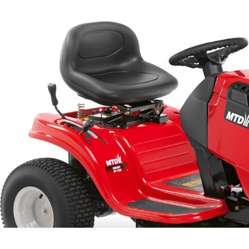 Traktor za travu SMART RF 125 sa širinom rezanja od 92 cm idealan je za površine do 4.000 m². Zbog malog radijusa okretanja od samo 46 cm, prepreke na površini također nisu problem. MTD motor s obujmom od 382 cm³ i transmatic prijenosom karakterizira praktičan 7-brzinski mjenjač, kojim je uvijek lako upravljati uz fleksibilan radni tempo. Podešavanje visine rezanja u 5 pozicija vrši se centralno pomoću poluge i omogućuje visinu rezanja između 30 i 95 mm. U standardnu opremu uključen je komplet za malčiranje i bočni deflektor, a sakupljač trave dostupan je kao dodatna oprema. Prolazni okvir olakšava ulazak i silazak, a upravljač s mekim rukohvatom ugodan je za korištenje.