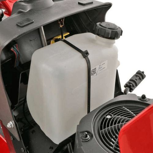 Čvrsti poluprozirni plastični spremnik za benzin s kapacitetom od 3,8 litara, prikladno smješten ispod haube za dolijevanje goriva