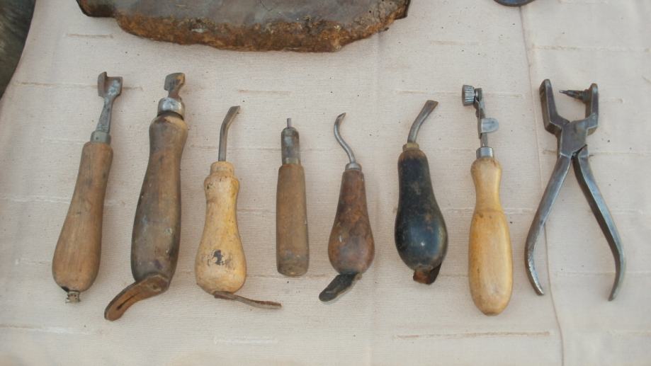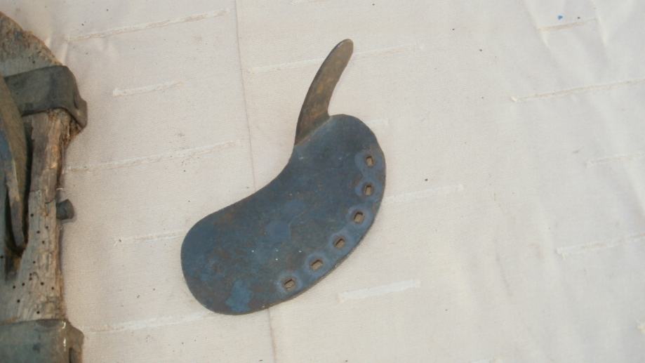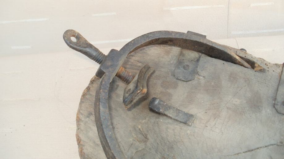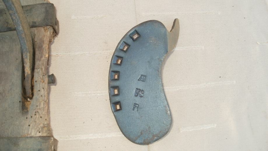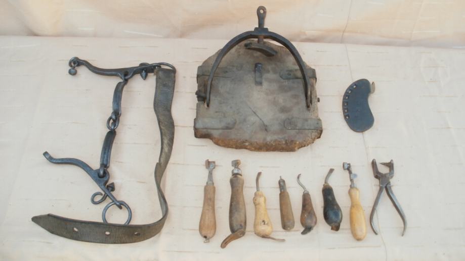 SVE ZA 100 EURA. MALI DIO RUČNOG ALATA KOJI UPOTREBLJAVAJU REMENARI PRI IZRADI KONJIČKE OPREME. OSIM TOG IMA I NEKA MJERA ZA KONJSKO KOPITO ILI SE SA TIM KONJ SPUTAVAO DOK BI SE POTKIVAO. TA DASKA JE OČITO BILA DUŽA NA KOJOJ JE OSTAO SAMO TAJ METALNI DIO. TAKO DA ČETE MORATI SAMI DOKUČITI ZA ŠTO JE SLUŽIO. OSIM TOG IMA I VJEROVATNO I NEKA MJERA ZA EKSERE KOJI SE ZABIJAJU U KONJSKO KOPITO PRILIKOM POTKIVANJA. A IMAJU I JEDNE "ŽVALJE" AKO SE TAKO ZOVU, ISTO OTKIVANE. TO SU JEDNOSTAVNO STVARI ZA LJUBITELJE KONJA I KONJIČKE OPREME TO JEST KOLEKCIONARE.