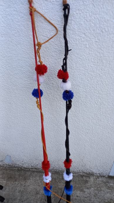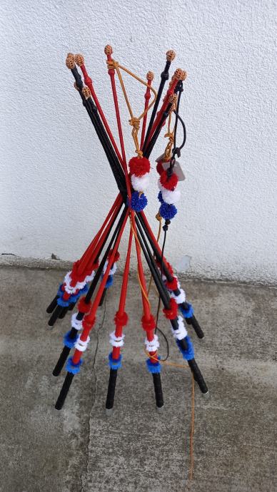 Bičalo ukrasno sa trobojnicom , bič kožni , sa trobojnicom , dužina cca 90 cm , novo , slanje poštom uz dogovor.