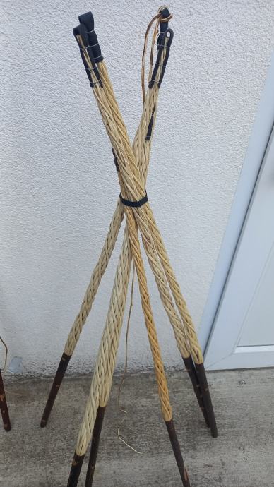 Bičalo pleteno drveno , sa kožnim bičem , dužina 110 cm - 130 cm , novo , slanje poštom uz dogovor .