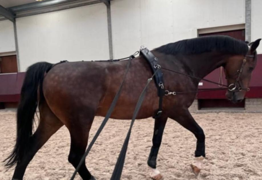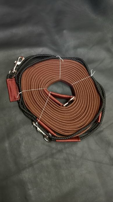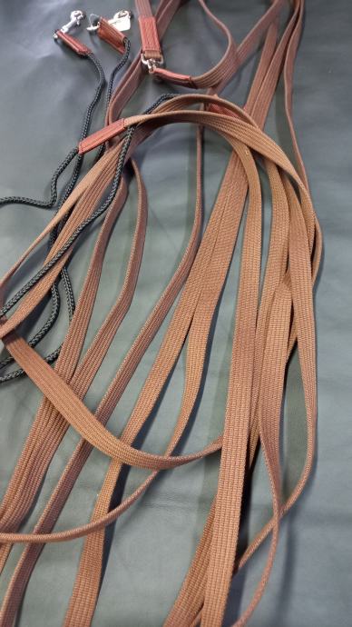 Dupla lonža , 8 m , za dresuru konja , čvrsta gurtna , karabinjeri , novo , slanje poštom.