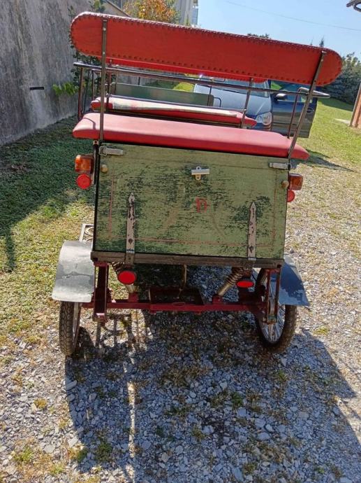 Opremljen je nožnom i parkirnom kočnicom te svjetlima i žmigavcima na akumulator.